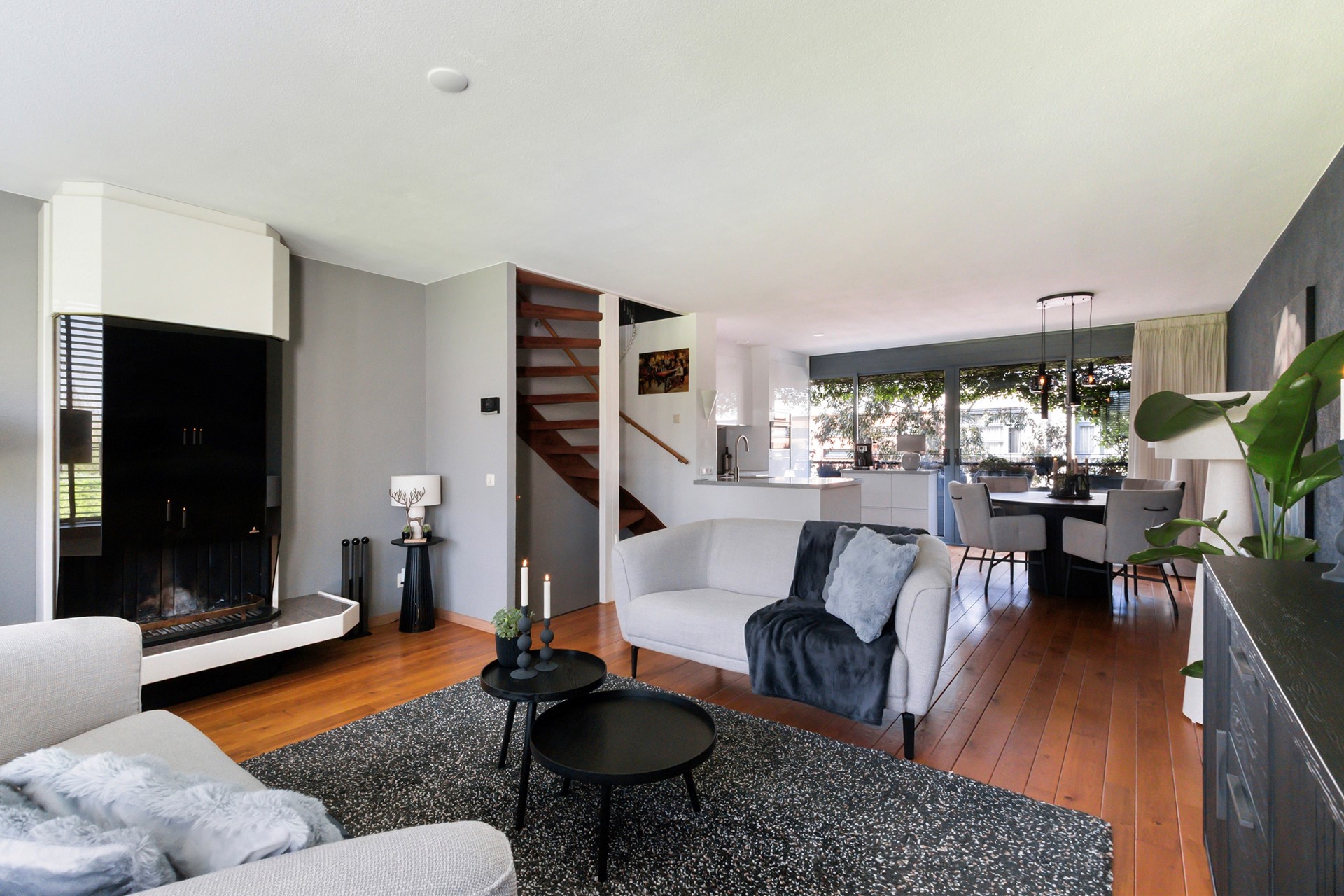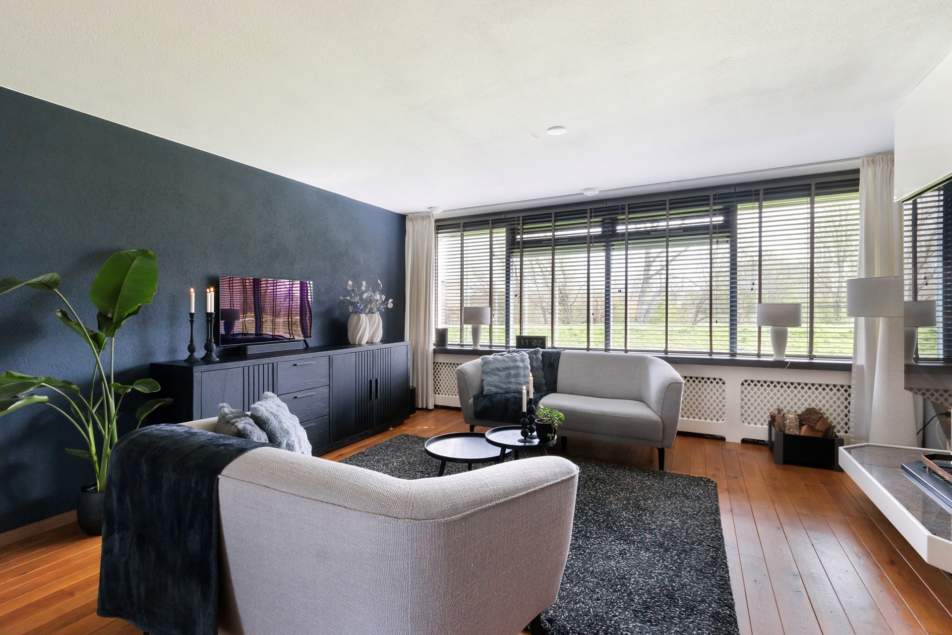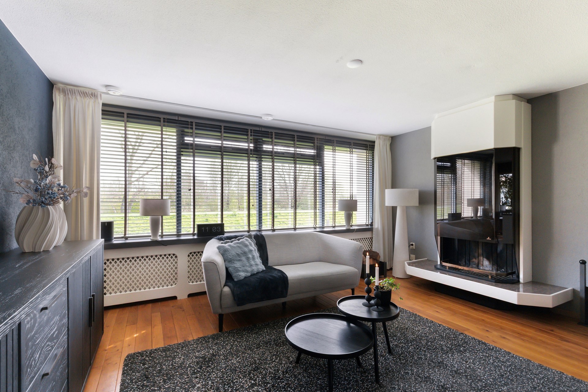 De woonkamer is op diverse manieren in te delen. Welke opstelling u ook kiest, het uitzicht op het groen en de Wantijdijk is altijd fantastisch. De open haard (merk: Barbas) zorgt voor warmte en sfeer.