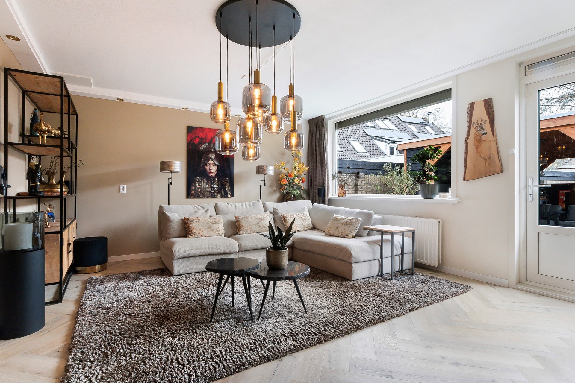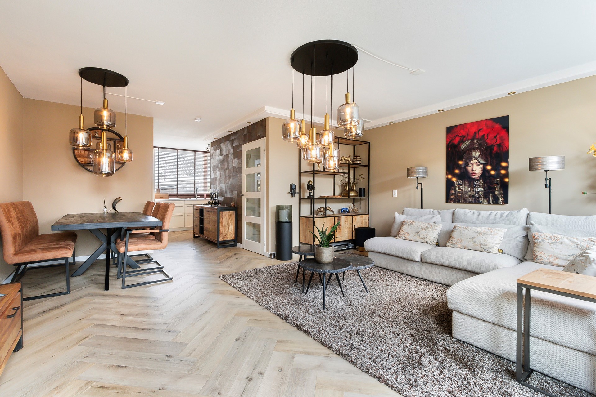 De woonkamer beslaat de volle breedte van de woning. Hierdoor is er veel lichtinval en heeft u veel contact met de tuin. De vloerverwarming geeft extra comfort; deze wordt gebruikt als bijverwarming. De koof met spotjes en de PVC vloerafwerking geven deze woonkamer een fijne plek om te genieten. Via de woonkamer bereikt u de diepe achtertuin. Aan de voorzijde staat de woonkamer in verbinding met de halfopen keuken.
