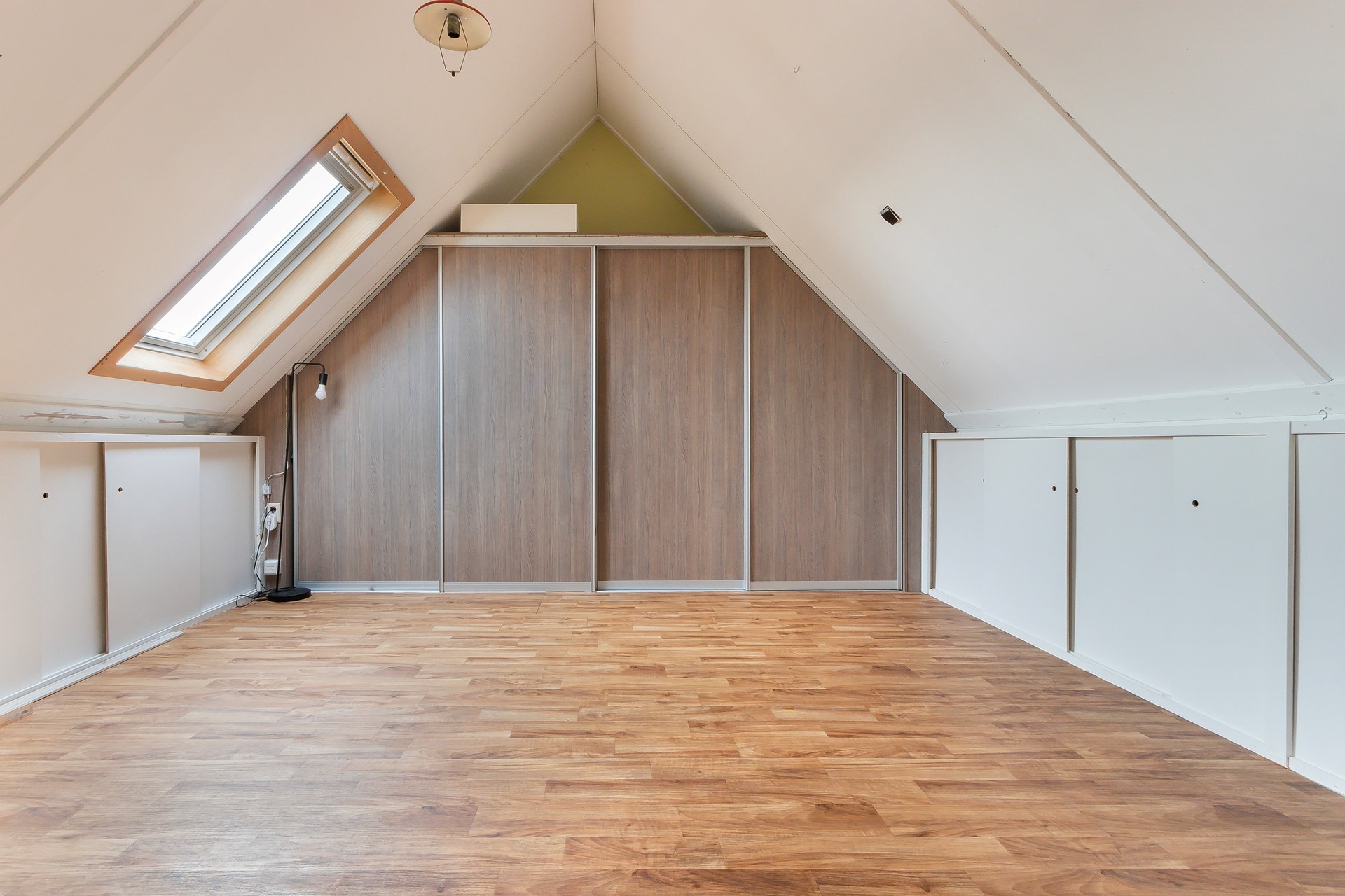 Op de tweede verdieping vindt u een ruime 4e slaapkamer. Er zijn twee kunststof dakramen geplaatst. De CV ketel, de mechanische ventilatie en de aansluitingen voor de wasmachine zijn ook hier aanwezig. Er is veel extra bergruimte “achter de schotten”.