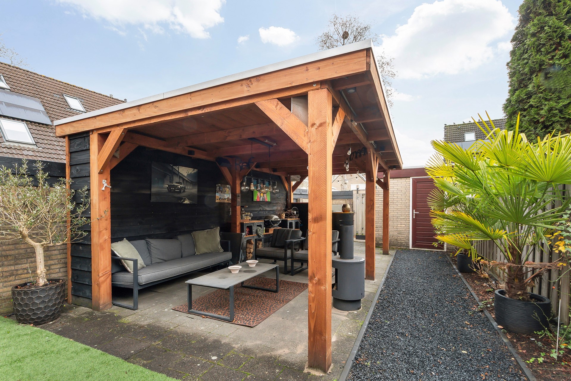 • Diepe tuin met stoere terrasoverkapping