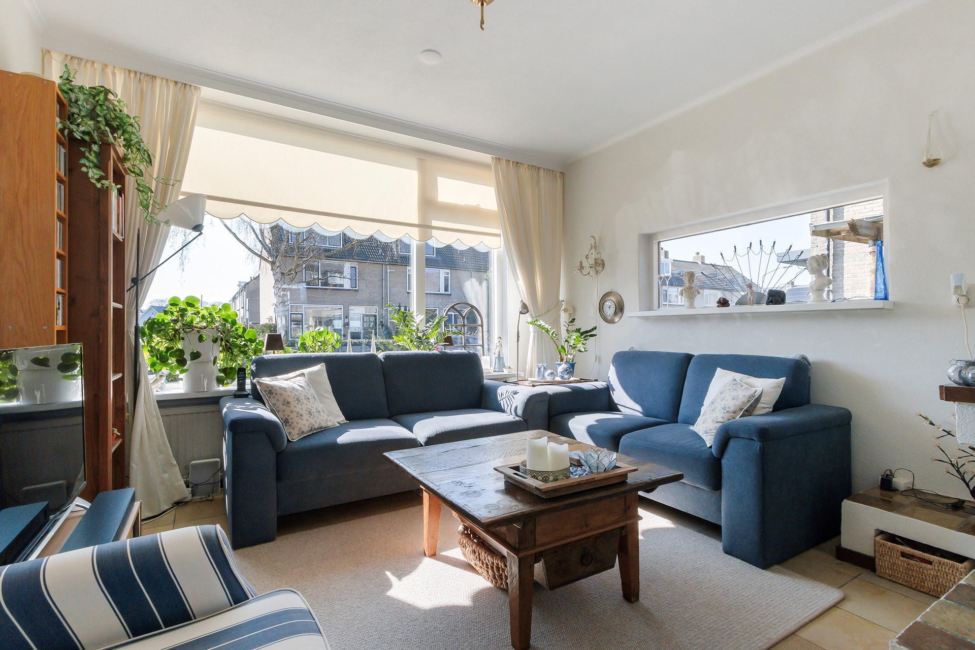 De voortuin is keurig aangelegd en voorzien van een grote stenen plantenbak met vaste beplanting. Aan de voorzijde van de woning bevinden zich een elektrisch bedienbaar zonnescherm en een buitenkraan.
