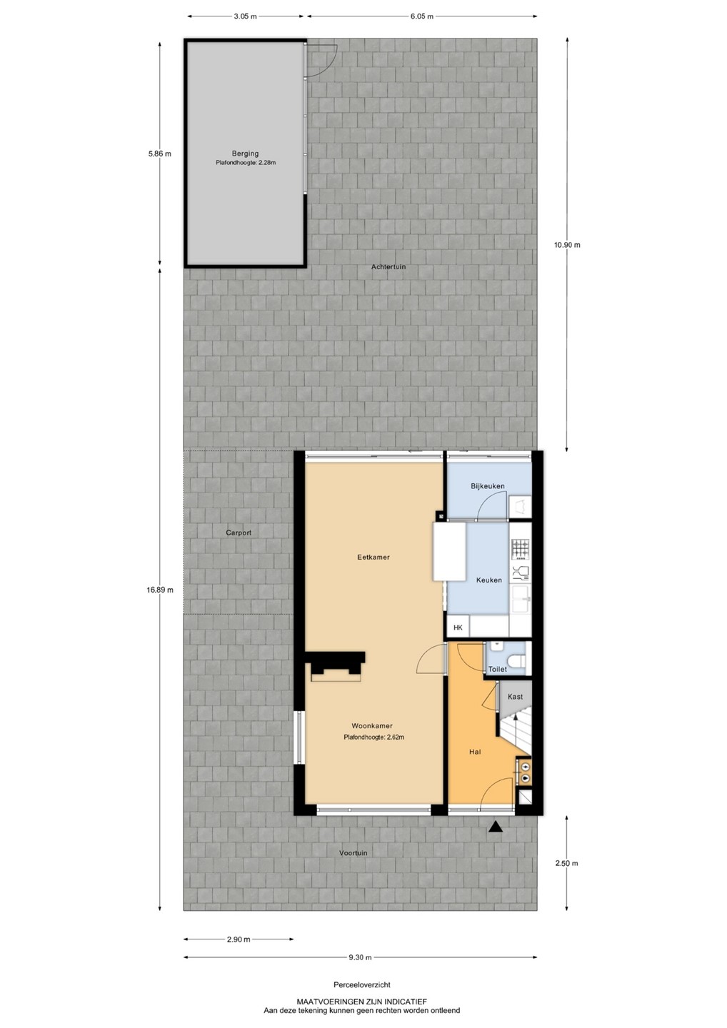 - Garage/berging: ca. 3.05 x 5.86 m.