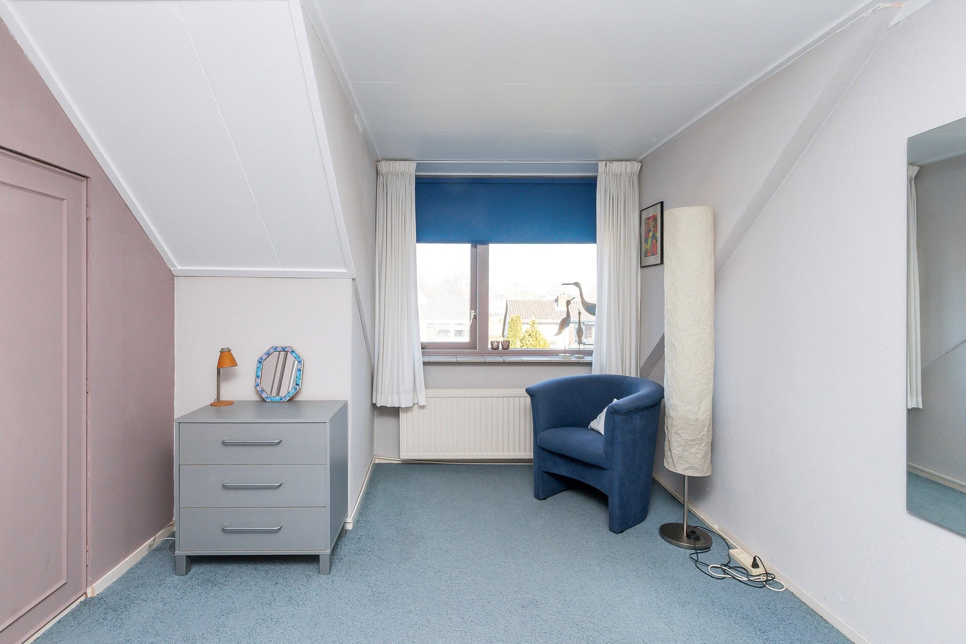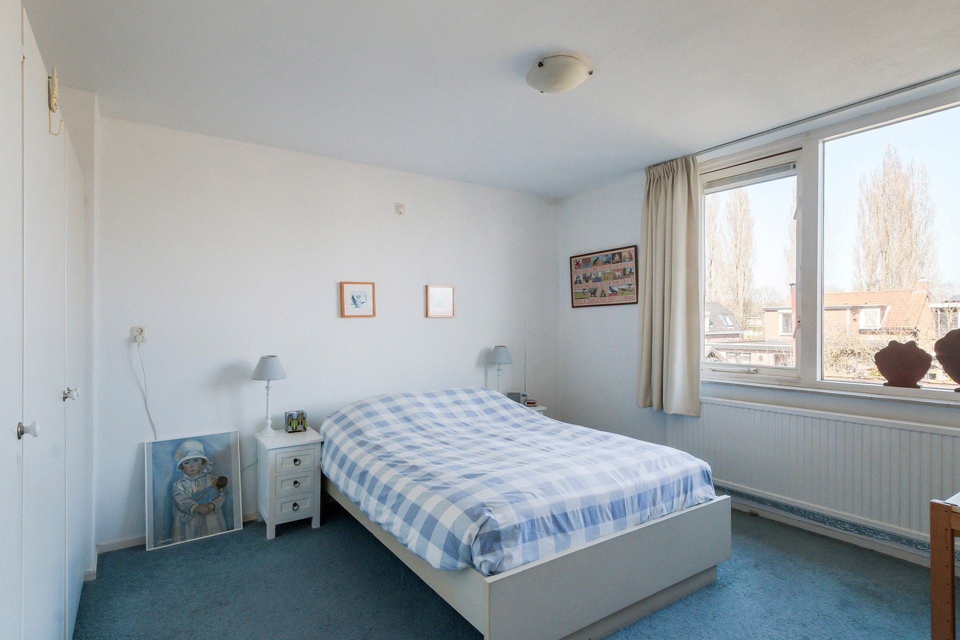 Slaapkamer 3 ligt aan de voorzijde. De grote raampartij zorgt voor veel licht en ook hier bevindt zich een vaste kast.