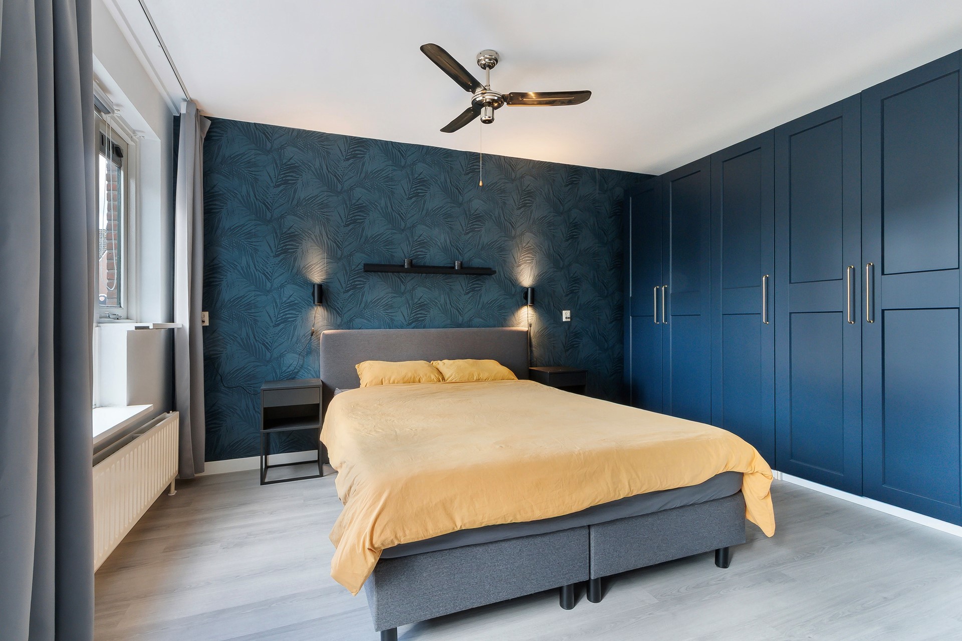 De slaapkamer is riant te noemen met een afmeting van ca. 20 m². De dubbele raampartij zorgt voor veel licht. Oorspronkelijk waren hier 2 slaapkamers.