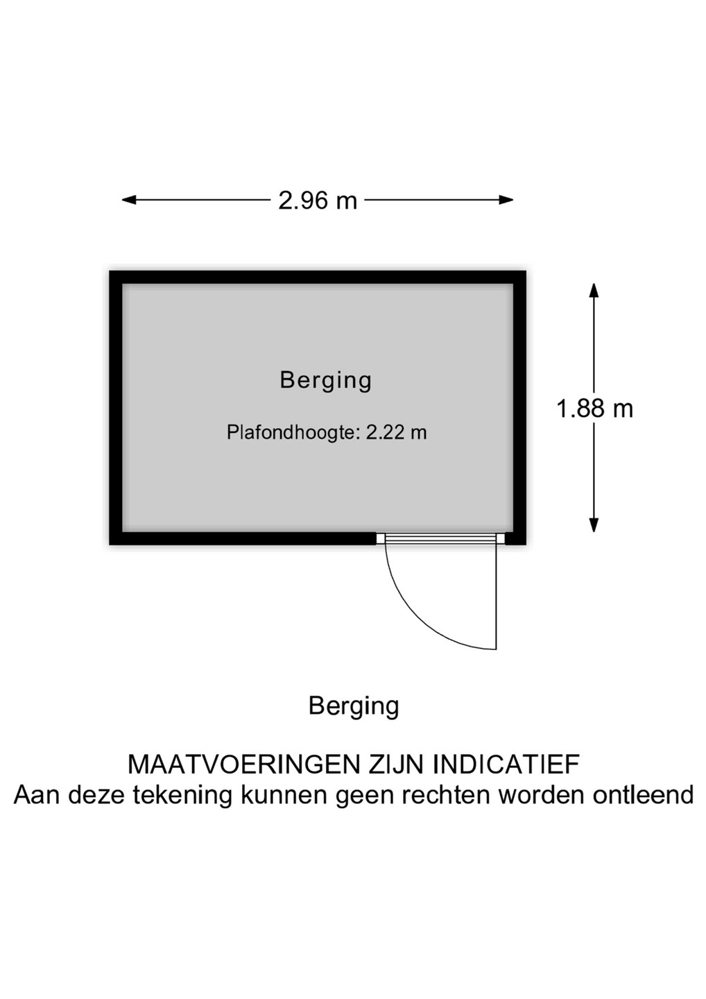 - Berging: ca. 2.96 x 1.88 m.