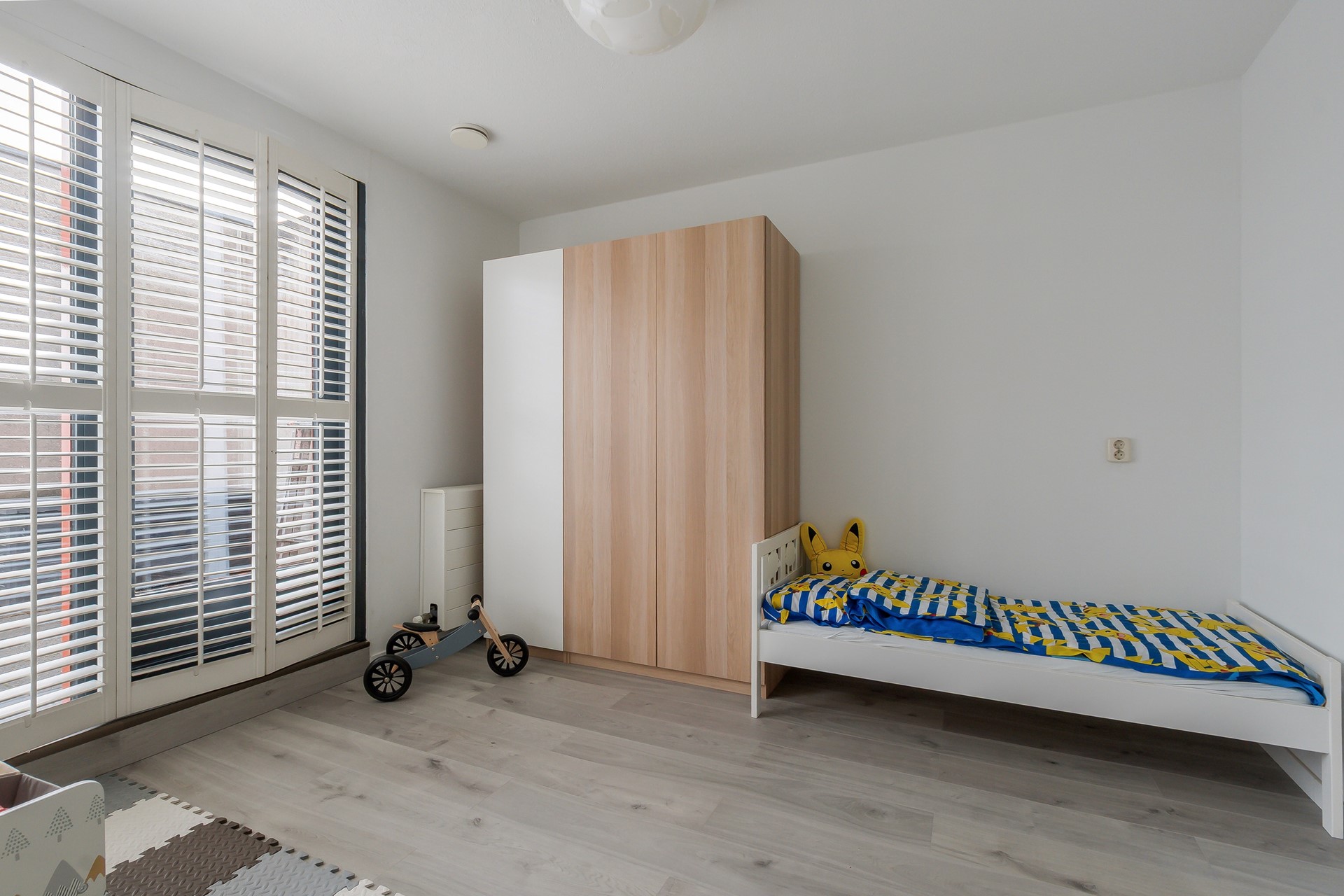 Slaapkamer 5 biedt veel licht en ruimte en sluit direct aan op het dakterras. De moderne shutter-raamafwerking blijft achter.